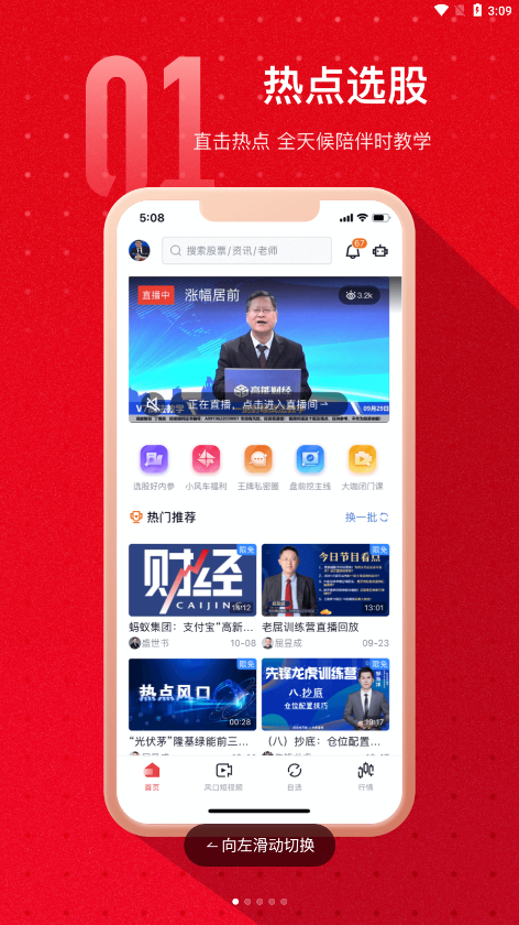 3. 浏览热点:在首页查看当前市场热点板块及领涨个股,点击查看详情。