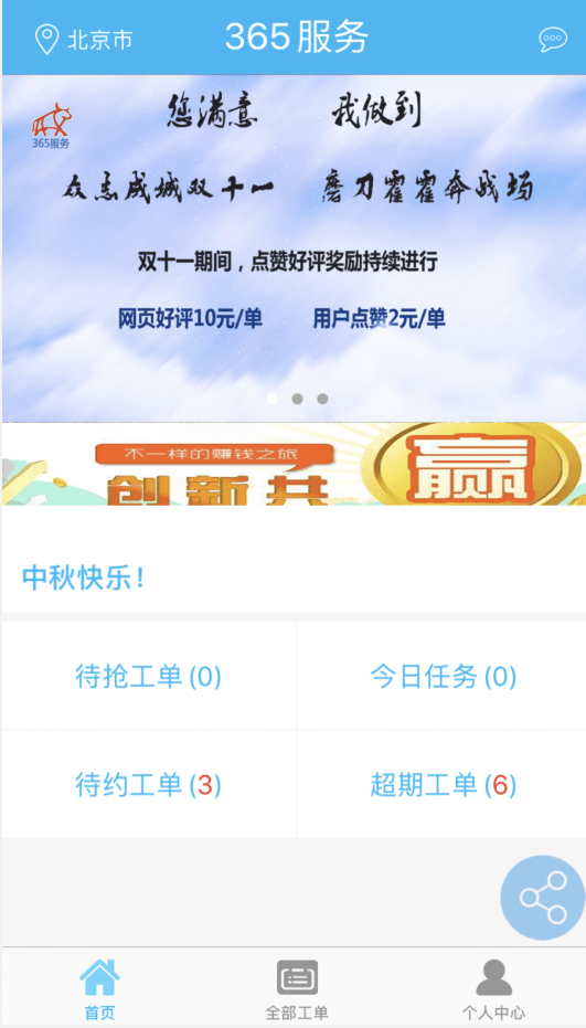 4. 个人中心:展示师傅们的个人资料和收益情况,支持修改密码、查看历史工单等操作。