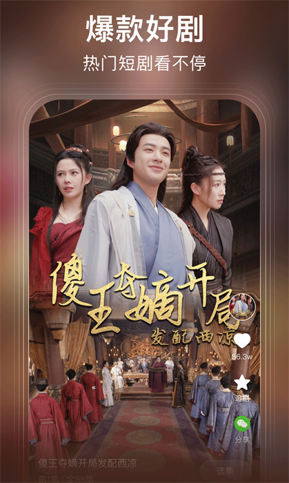 3. 便捷分享:支持一键分享到社交平台,让用户与朋友共同分享精彩的短剧内容。