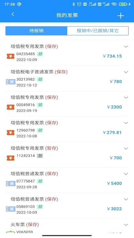 4. 票据查看与分类:所有票据都会保存在软件中,用户可以随时查看。同时,软件还会对票据进行分类,如报销中、已报销和其他,方便用户管理。