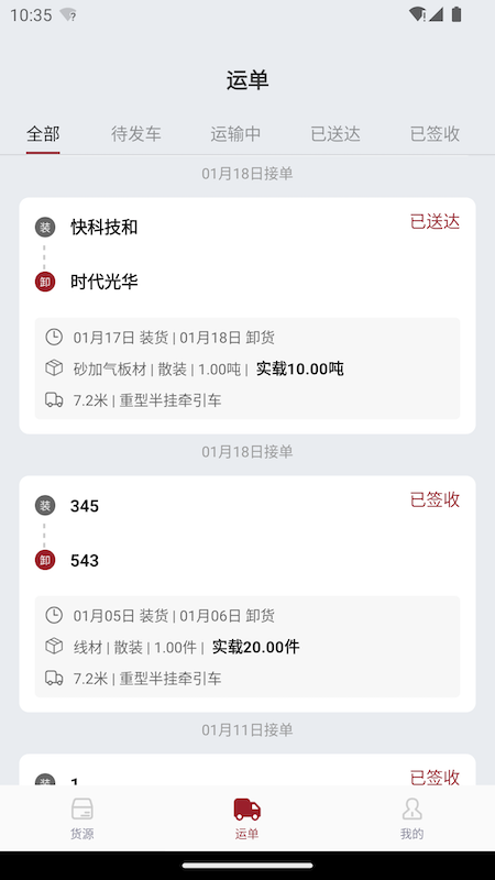 2. 运单管理:司机可以方便地查看和管理自己的运单,包括运单详情、运输路线、装货和卸货地点等信息。