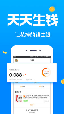 生钱:记录您的每一笔网购,按照年化收益,每日生钱。