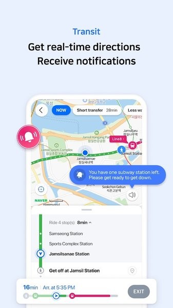 2. 智能导航:选择目的地后,NAVER地图会提供多种出行方式的导航路线,包括驾车、公交、地铁、步行等,用户可以根据自身需求选择合适的导航方式。