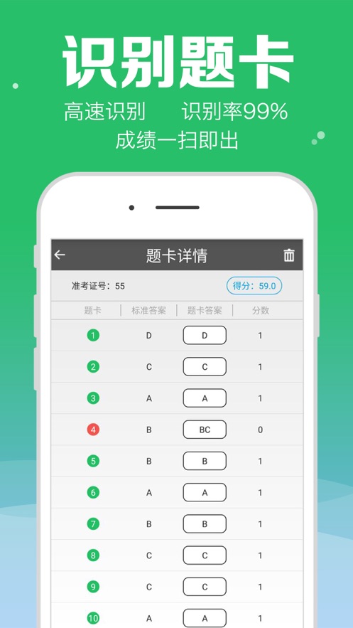 1. 题卡扫描:用户可以通过手机摄像头对题卡进行扫描,软件会自动识别题卡上的答案。
