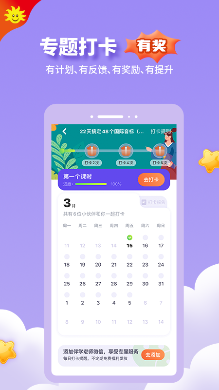 - 加入专题打卡营,按照科学合理的打卡计划进行学习,打卡后可获得反馈和奖励。