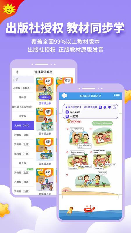 - 小学英语课本点读,即点即读,支持单句重复、单元循环、整册朗读等功能。