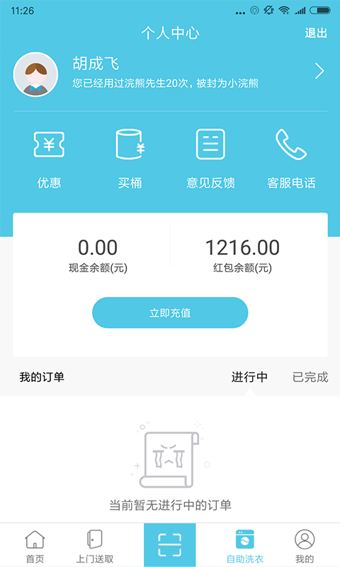 支持用户自助下单,通过定位获取最近洗衣机地址,