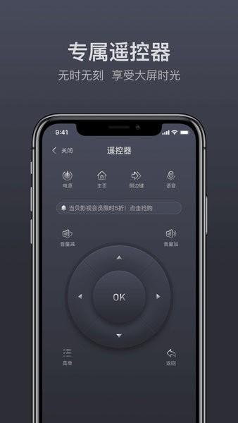 1. 遥控功能:支持通过手机屏幕模拟遥控器按键,实现对智能电视和盒子的基本操作,如频道切换、音量调节、播放控制等。