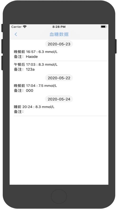 2、所检测的数据都会呈现到你的手机上,让自己也能够查看自己的血糖情况,是非常的便捷的。