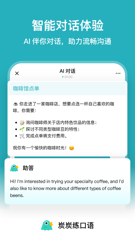 炭炭练口语APP是一款专注于提升英语口语能力的智能学习工具。它结合了先进的人工智能技术与丰富的学习资源,旨在帮助用户通过趣味性和高效性的练习,迅速提高英语口语水平。