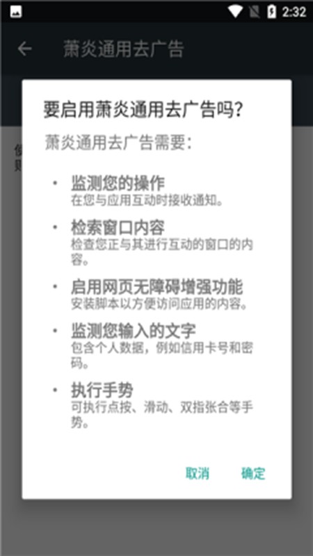2. 开启权限:根据软件提示,开启必要的系统权限,以确保去广告功能正常运行。