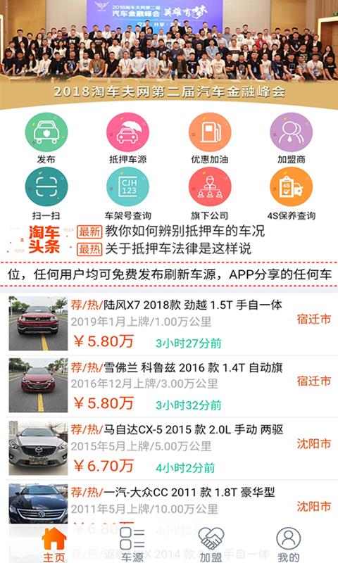 抵押车淘车夫网app是一款专为客户提供二手车交易服务以及抵押车源信息的应用软件,该平台整合了2000多家加盟店铺,其中覆盖全国各个城市,旨在为客户打造一个高效便捷的购车服务以及的交易体系;这里提供的二手闲置车辆信息真实可靠,每款车辆都拥有详细的介绍信息,行驶总公里、品牌上市时间等一目了然,选择车辆更加直观透彻;在这里汇集了海量的车源信息,可以随时发布自己的车源信息,进行汽车交易服务,还有优惠加油服务,帮助用户抵押车购买车,除此之外,app还提供优惠加油服务,开启手机定位就能查看附近周边的加油站信息了,还能线上充值油卡,选择套餐享受折扣充值的优惠;最新车源都会在首页提供推荐给你,实时关注最新上架车源,购物认购车辆更加有保障