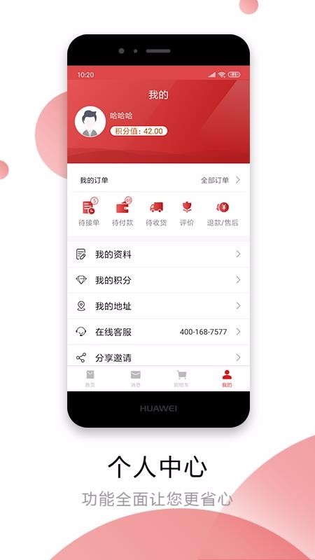 3.智能累积获取的积分奖励,用户可以直接查看积分账户余额,管理积分;