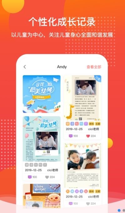 1.家长可以收到孩子的个性化成长记录及个性化成长报告,关注孩子成长的每一个瞬间。