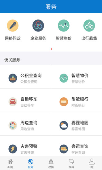 提供了网络问政、企业服务、智慧物价、出行路线等服务平台