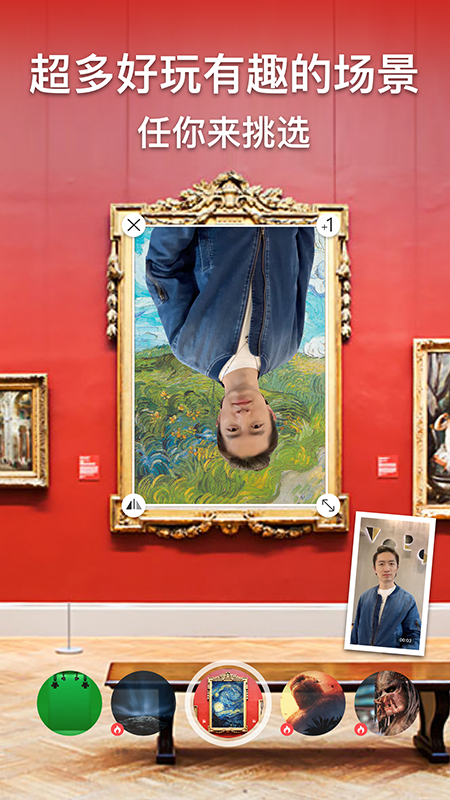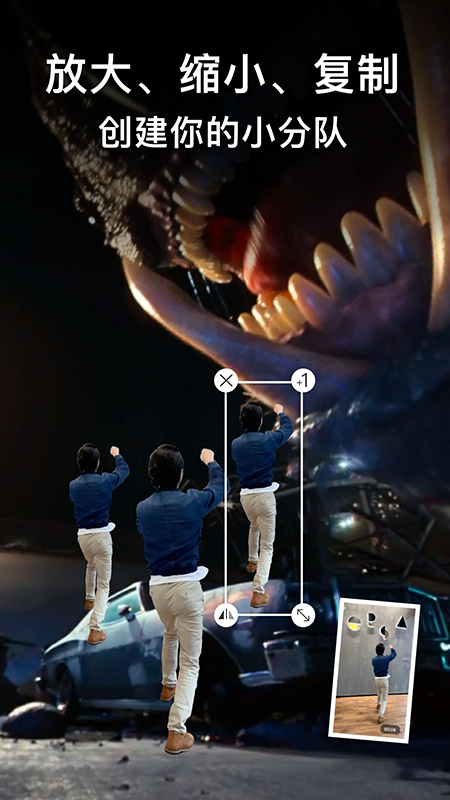 【放大缩小,无限复制】录制视频时,可将自己和他人任意放大、缩小。无限复制自己的分身,一起制作魔性视频。