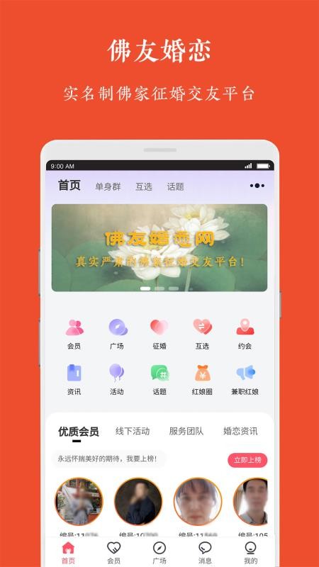 1. 注册登录:下载佛友婚恋APP,填写真实资料并完成注册,即可登录使用。
