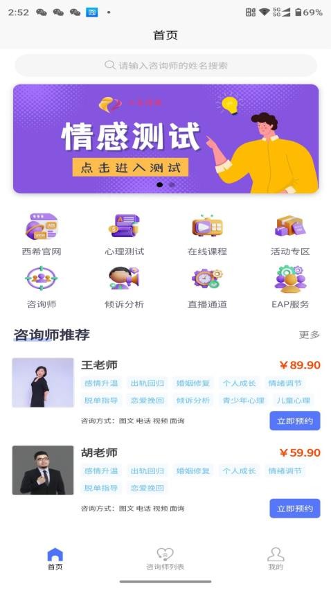 2. 浏览与选择:在app首页浏览各类情感咨询服务,选择适合自己的服务类型,如在线咨询、心理测试等。