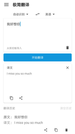 4. 历史记录:保存用户的翻译历史,方便回顾和查找。
