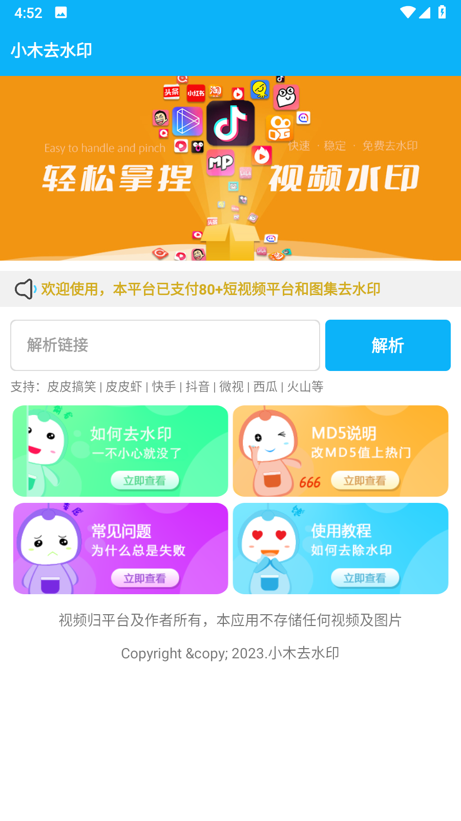 小木去水印通过先进的图像处理技术和智能算法,能够自动识别并去除图片和视频中的水印元素,同时保持原有内容的清晰度和完整性。用户只需简单几步操作,即可获得干净无水印的媒体素材。