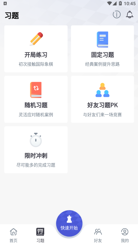 超玥国象最新版集合了教学视频、棋局分析、在线对弈、智能训练等多种功能于一体,致力于打造一个全方位的国际象棋学习与交流平台。通过智能化的学习系统,帮助用户快速提升棋艺,享受国际象棋带来的乐趣。