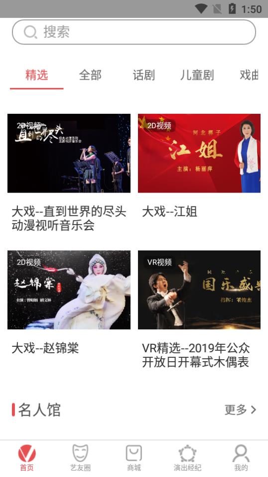 1. 浏览内容:在首页,用户可以浏览到各种戏曲、话剧、儿童剧等内容的推荐,以及VR专区、艺友圈等特色功能。
