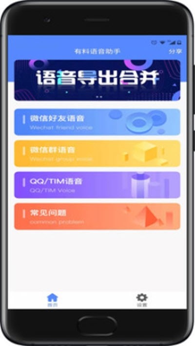 有料语音助手app是一款非常实用的语音智能导出工具,这款软件可以识别到各种的语音内容,用户需要把微信的语音格式转换为其他的格式,就可以通过软件自动的识别,并且用户可以合并多条的语音,导出在手机上,还可以发送给好友,而且收听也会很方便,有需要的朋友们快来下载使用吧!