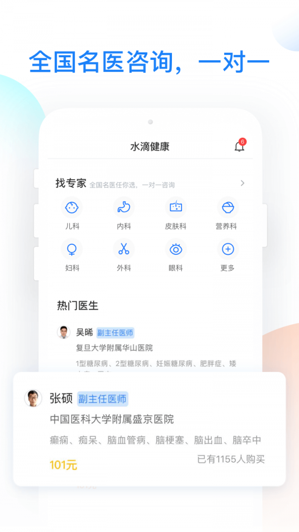 水滴健康是一款健康管理app,传播健康生活资讯,深度服务每一位用户,保障亿万家庭!水滴公司已获得腾讯、蓝驰创投、美团点评等知名投资机构累计2.1亿联合投资,选择水滴健康app保障更放心。水滴健康是水滴公司打造的互联网医疗健康保障组织,运营主体为“妙医互联(北京)科技有限公司”以“保障亿万家庭”为使命,由腾讯、美团等联合投资。