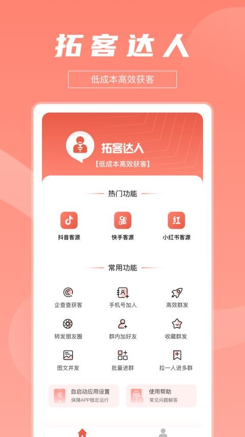 1. 注册登录:下载拓客达人APP,完成注册并登录账号。