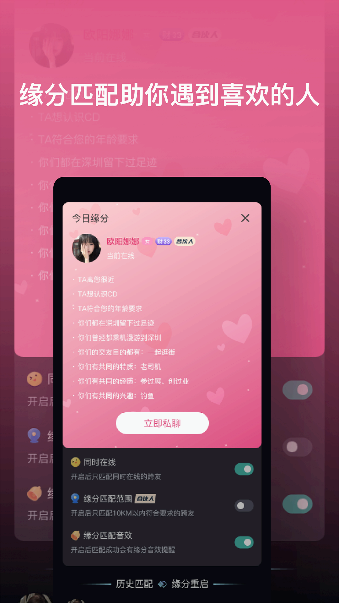 3. 浏览匹配:在推荐页面浏览可能感兴趣的用户,点击喜欢或跳过进行匹配。