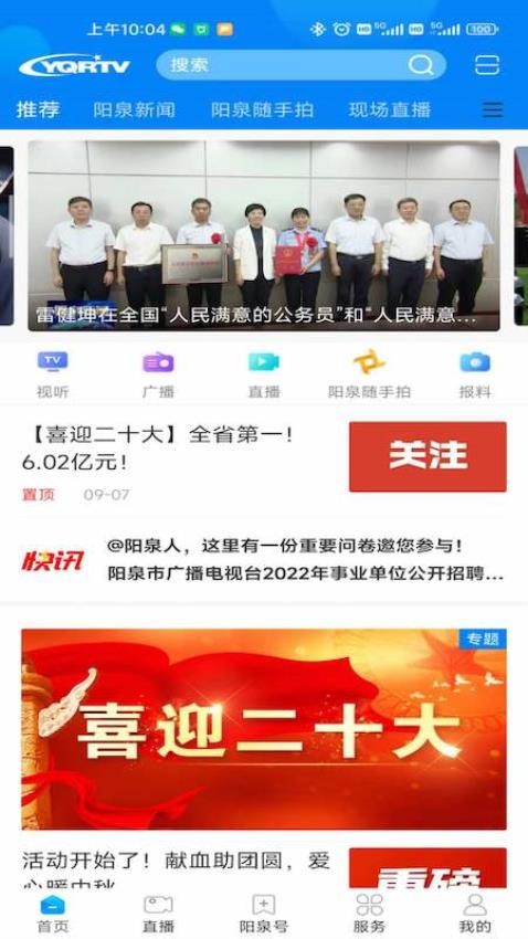 看阳泉app是阳泉市官方宣传媒介,集新闻、直播、电视、广播、服务于一体,通过多元化的传播方式,如听广播、看直播、看图文、看电视等,为用户提供实时、全面的本地新闻资讯。