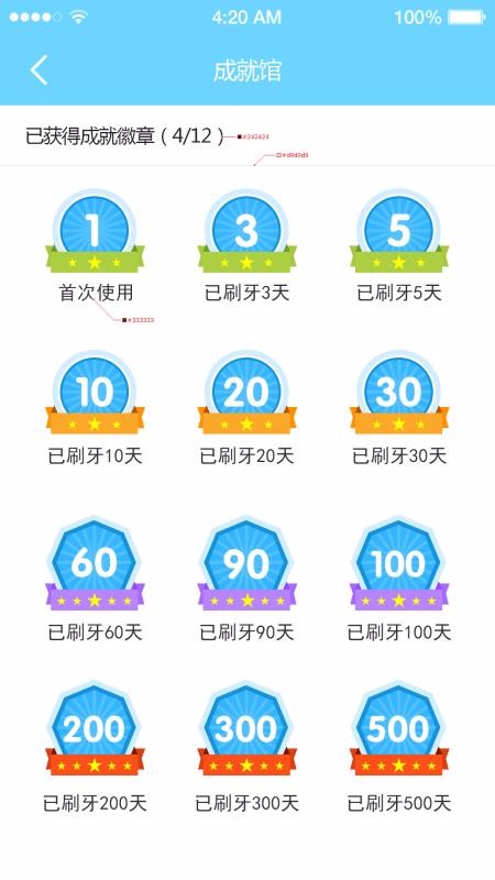 2.孩子坚持完成刷牙,即可获得成就勋章奖励,以便孩子的刷牙积极性更高;