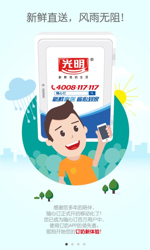 3.光明随心订作为您的移动订奶管家,每天清晨新鲜到家,尽享便捷,为你提供最舒适的订奶体验,提供了丰富的奶制品种类,味道鲜美,牛奶、酸奶,随时欢迎预定