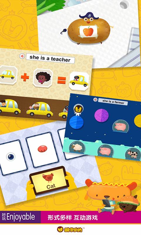 多纳学英语APP集合了丰富的英语学习资源,包括单词、句子、对话、儿歌、故事等多种形式。通过动画、游戏、互动练习等多种教学手段,让孩子们在轻松愉快的氛围中学习英语,提高听、说、读、写全方位能力。