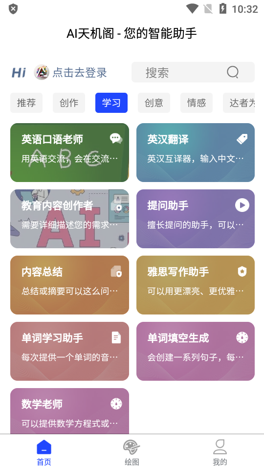 3. 多功能AI工具:除绘画与写作外,AI天机阁还提供AI聊天、英汉翻译、英语口语练习等多种功能,满足用户在工作、学习及生活中的多样化需求。