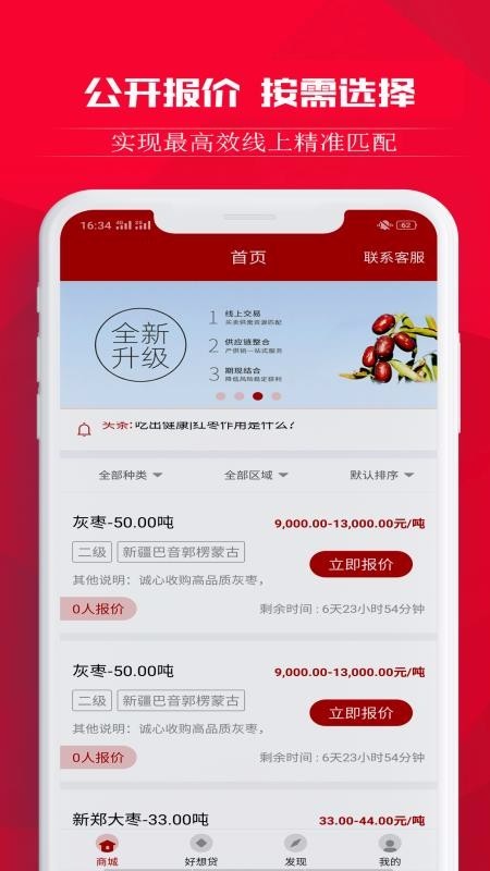 1.整合行业上下游资源,免费发布供求信息,即时更新匹配,线上下单完成交易,让供方红枣更好卖,让需方采购更简单。