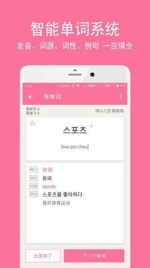 2.韩语学习 精选韩语高频50词,进阶至韩语初级基础词汇三部曲,更有各类场景专题课程。从词,句,对话学习,循序渐进,轻松学韩语