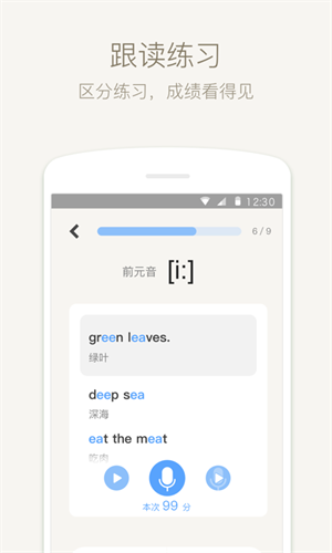 5. 学习进度跟踪:软件会实时记录用户的学习进度,包括已学习的音标数量、练习的正确率、学习时长等。用户可以通过这些数据了解自己的学习情况,调整学习策略,同时也能看到自己的学习成果,增强学习动力。