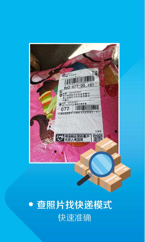 1. 照片找件:通过拍摄面单照片快速定位包裹,减少人工翻找时间。