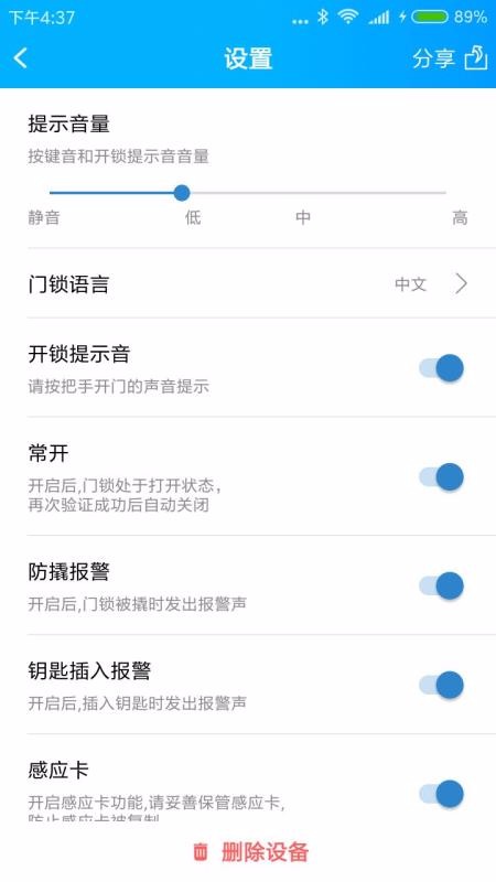 4. 开启“低电量提醒”功能,及时了解门锁电量情况并充电。