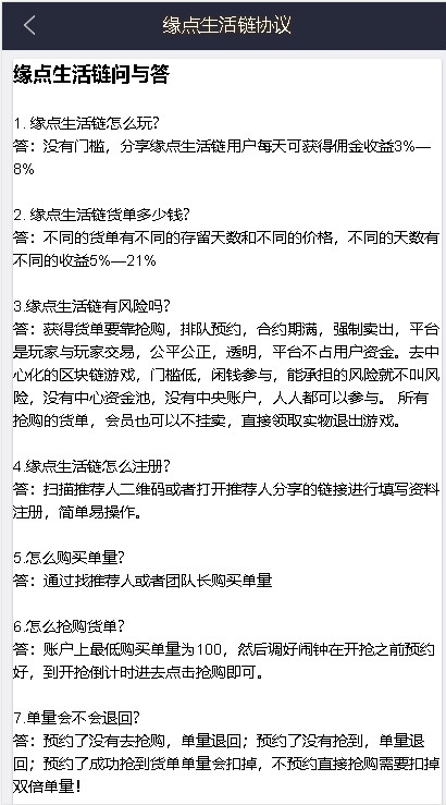 缘点生活链app是的当之无愧的绝佳的手机抢单赚钱的应用软件。平台这里大家也是可以找到很多类型的手机抢单赚钱的任务等着大家哦。手机这里也有很多很全面的大家想要线上抢单赚钱的应用软件哦。大家可以免费的线上区块链抢单哦。线上大家也是可以随时领取自己想要的任务。邀请好友一起使用软件还可以获得更多红包。这里新手免费体验活动项目,感受平台魅力。这里不仅有挖矿,分享购物链接,还可以资金盘模式,感兴趣的来试试!