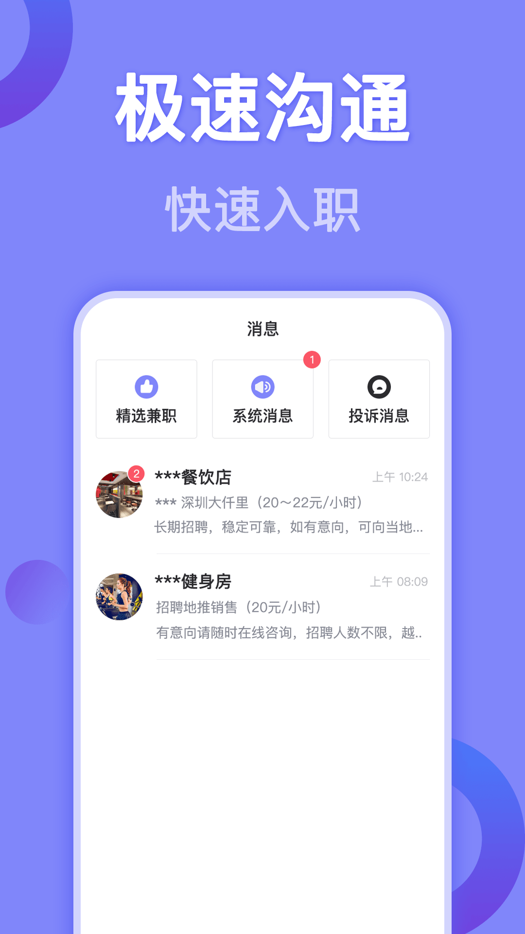 3. 消息推送:应用会实时推送最新的兼职和实习信息,确保用户不错过任何合适的岗位。