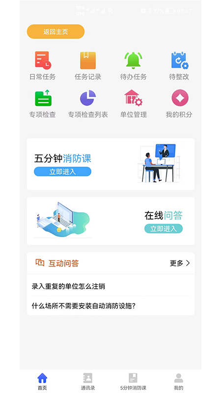 4. 培训学习:提供丰富的消防知识库和在线培训课程,帮助用户不断提升个人及团队的消防安全意识和技能水平。