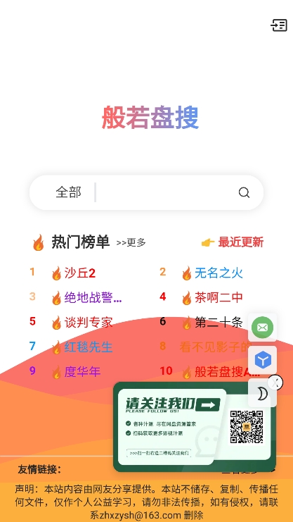 般若盘搜是一款集资源搜索、下载、分享于一体的综合性应用软件,主要面向广大互联网用户,提供各类资源的快速检索与下载服务。该软件支持多种格式的文档、视频、音频及软件的搜索与下载,旨在帮助用户轻松找到所需资源。