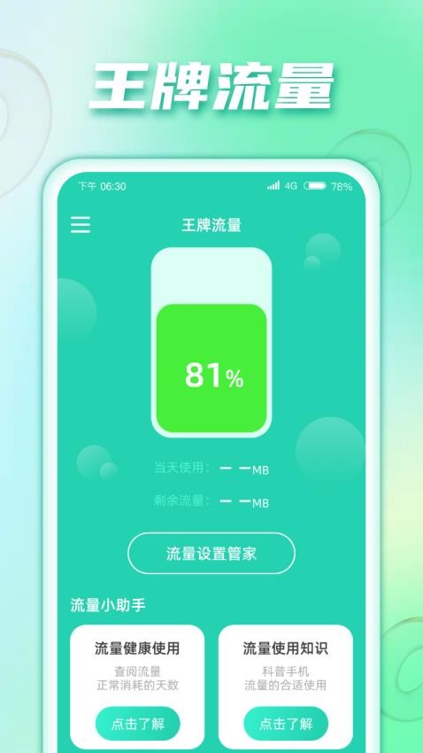 1. 下载安装:从官方渠道下载王牌流量App,完成安装后打开应用。