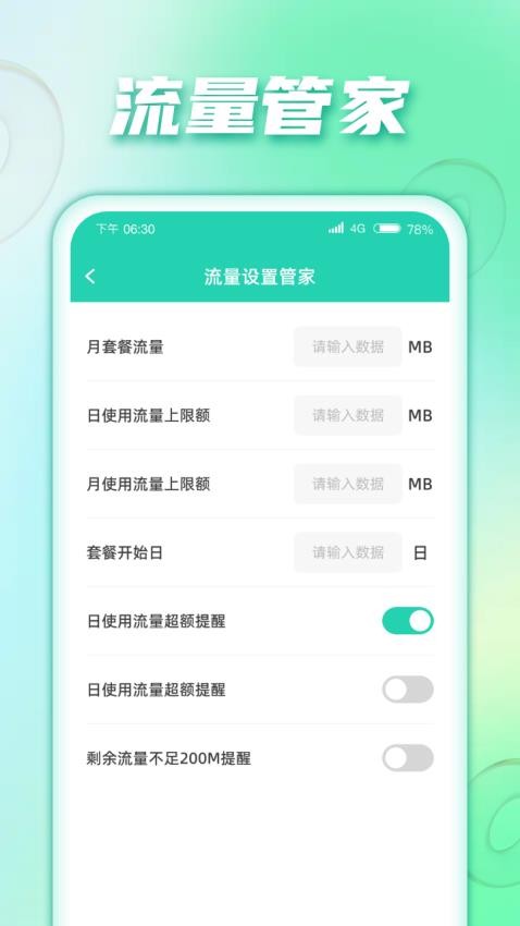 2. 流量监控:实时显示当前流量使用情况,避免超出套餐限制。