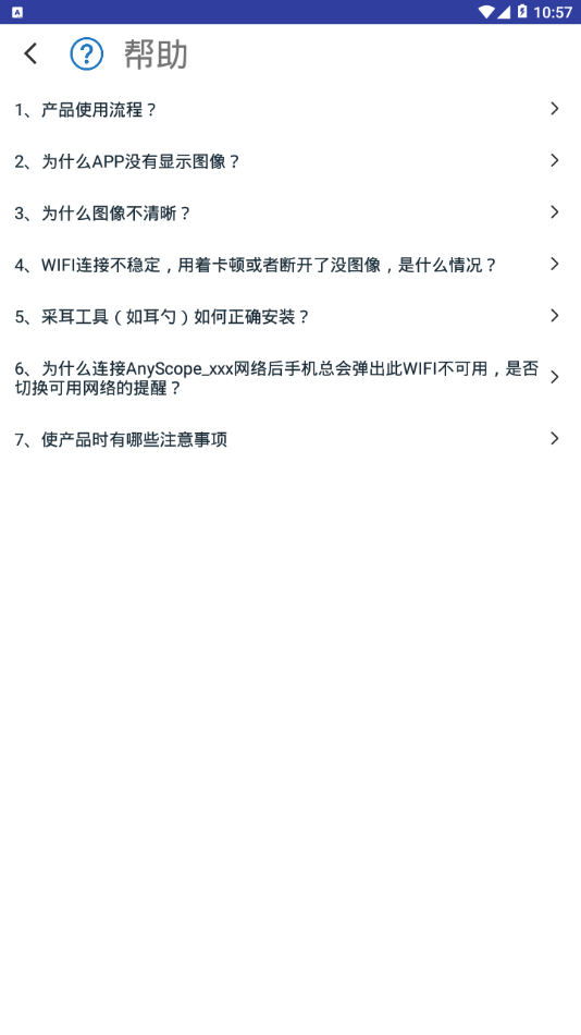 1. 启动连接:打开Anyscope可视挖耳勺开关,通过蓝牙与手机APP配对。