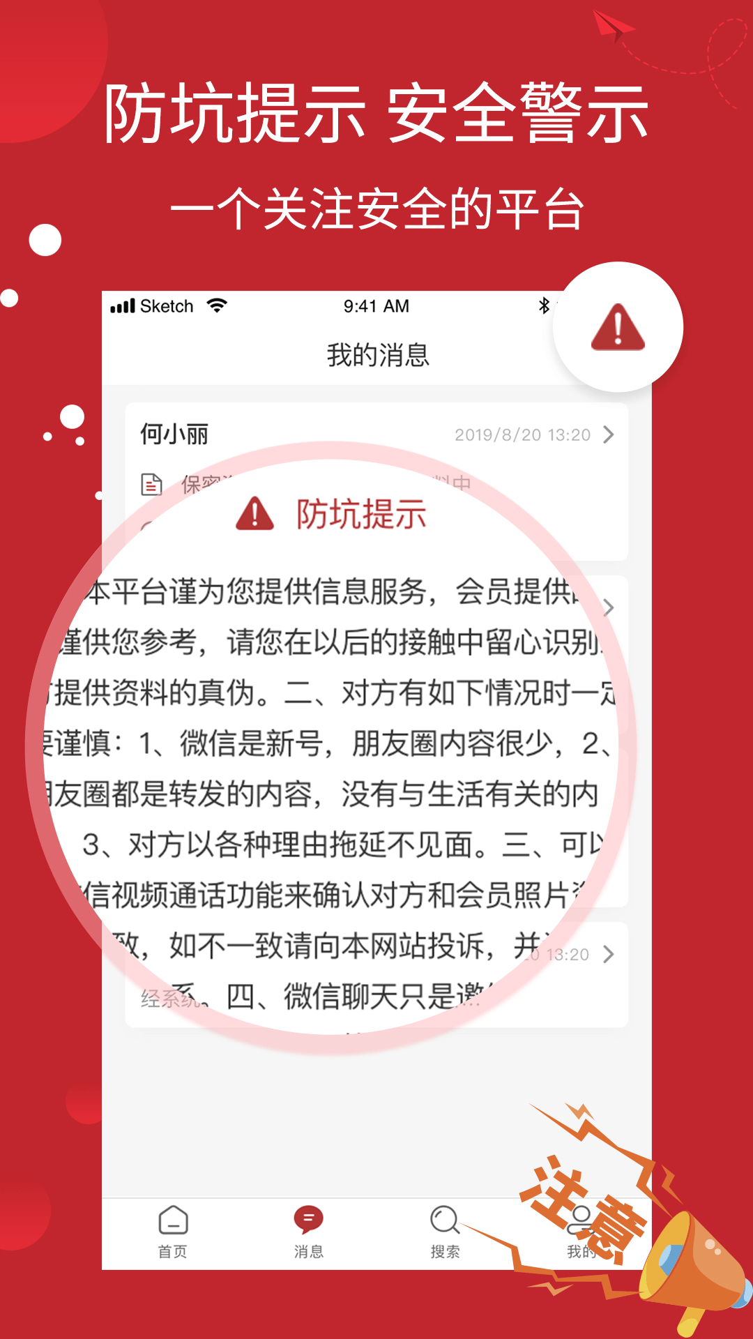 4.安全相亲:独创信息查看申请功能,用户资料保密,本人同意方可查看,用户之间资料严谨互换,让信息安全成为重中之重。