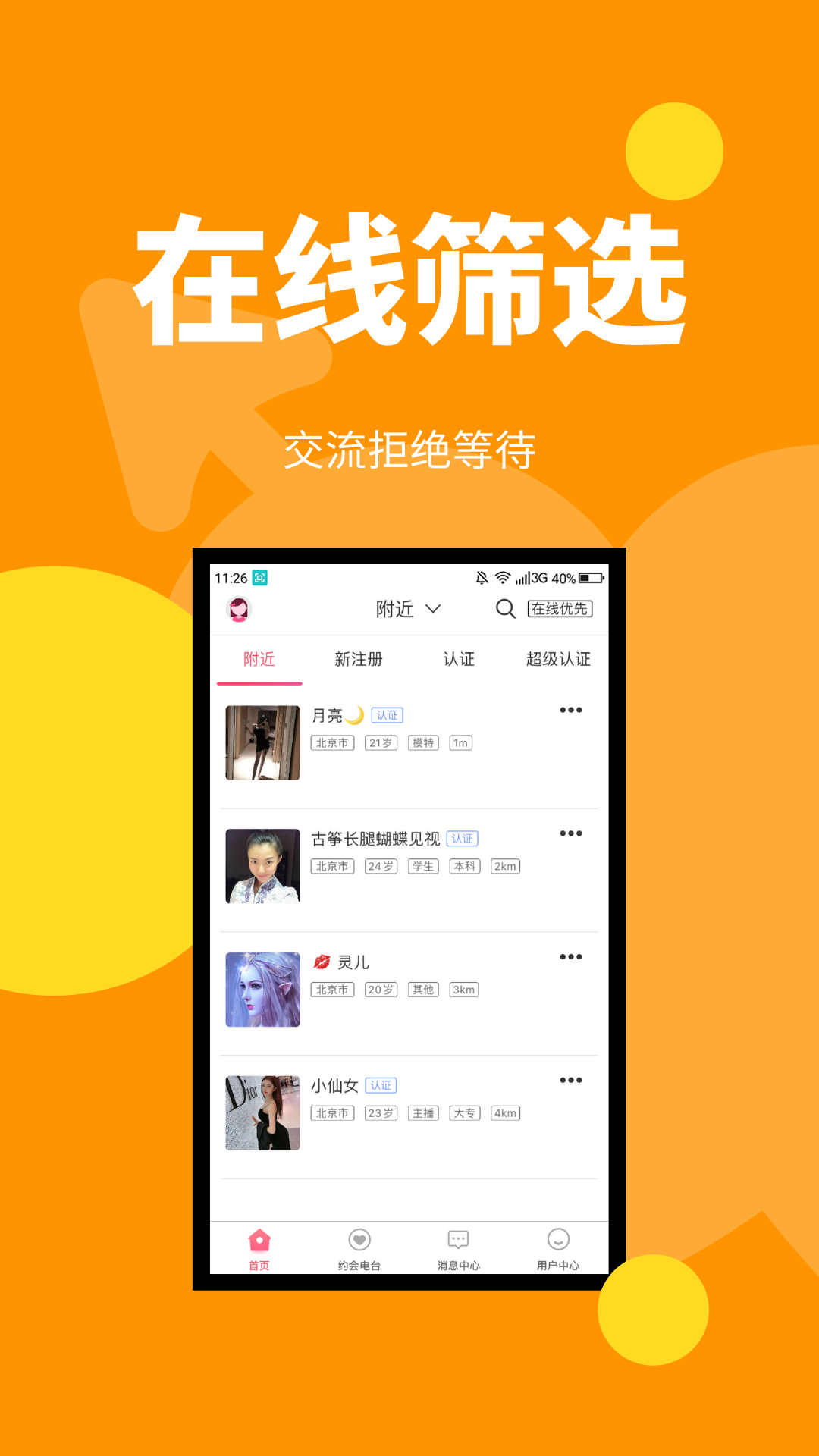 这里是一个高品质社交人群的聚集地,开朗活泼的你可以在悦己找到心仪的友人。