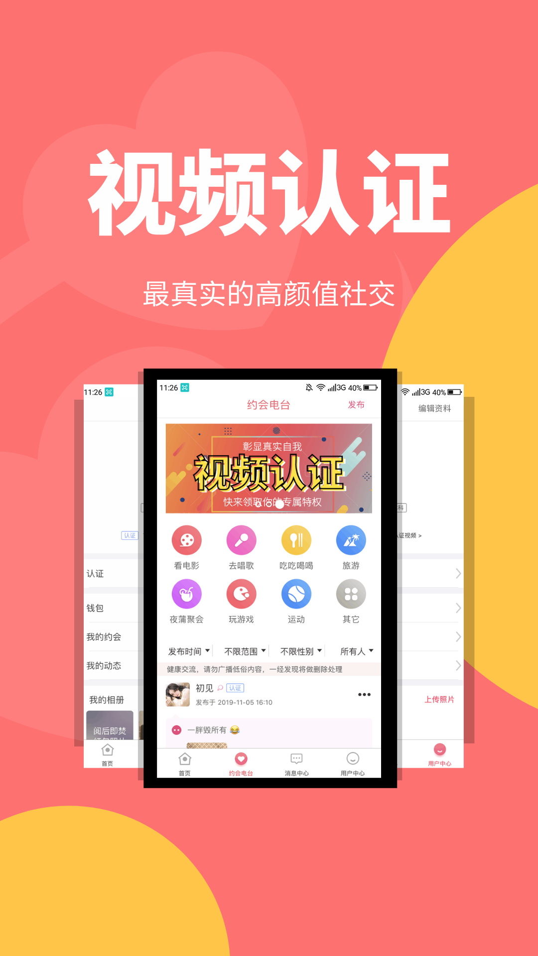 新悦己以视频认证开启女生完全真实的社交生活。以邀请制与付费会员制为基础展开高品质男生的甄选。